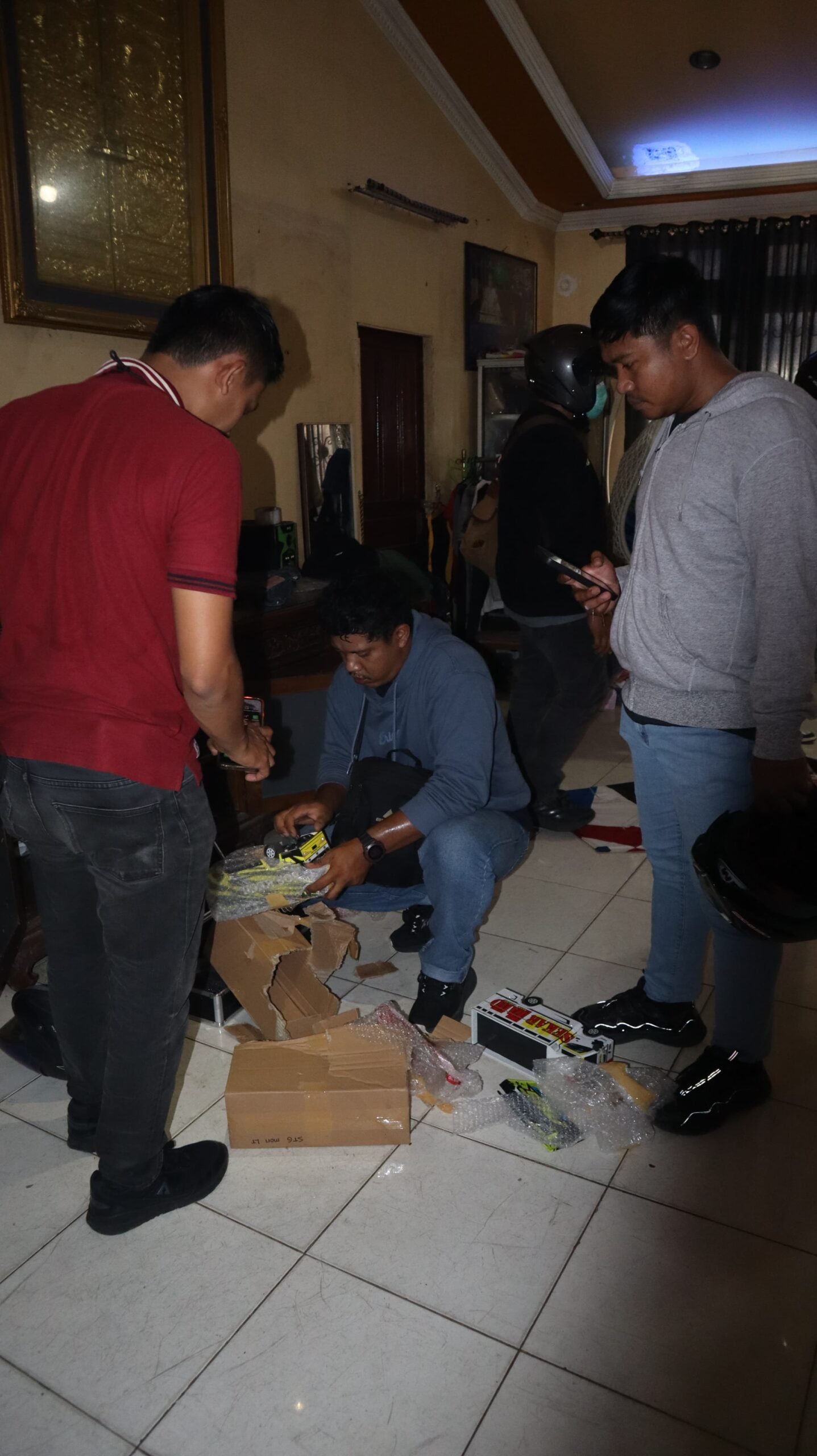 Penggerebekan ini berhasil mengamankan sejumlah barang bukti penting, meliputi 14 buah bong alat hisap sabu, satu senjata tajam, tujuh unit komputer dan dua monitor diduga untuk judi Online, serta satu klip plastik transparan berisi narkotika jenis sabu dengan berat bruto 0,12 gram.